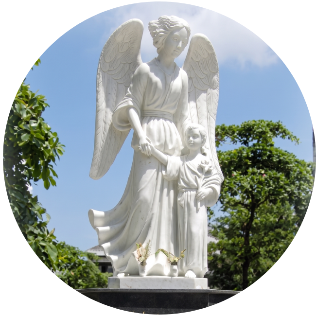 อารักขเทวดา คบเพลิง และหนังสือ สื่อถึงปัญญาที่สว่างไสวคู่คุณธรรมและการคุ้มครองจากพระเจ้า